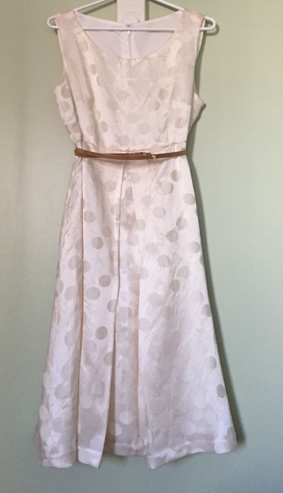 完成后的效果却很出人意料。可以配各种色彩的皮带。面料是丝和棉的混纺