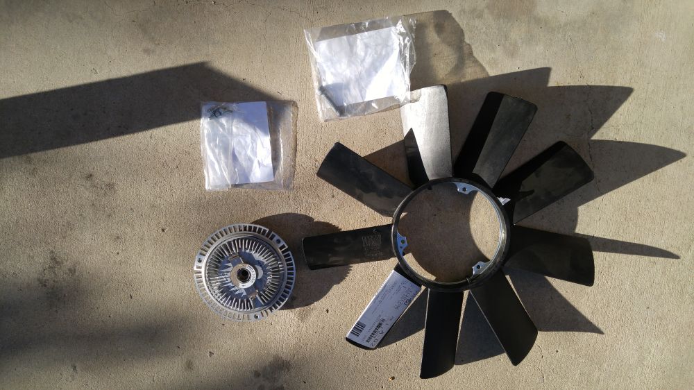 新买的风扇和散热器加螺钉。吐槽一下,4个螺钉就15块钱,强盗啊。风扇加德国产离合器,140元。