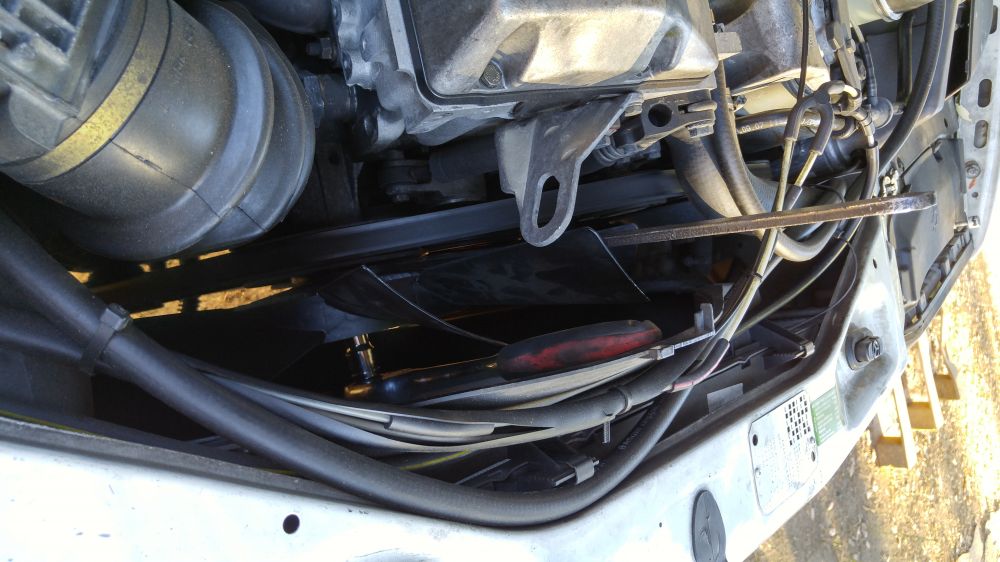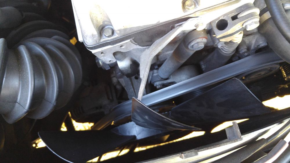 风扇叶片会打到这个金属的支架,幸好我先用手试了试,要是直接发动,这新风扇就算毁了!问题来了,我知道这个塑料风扇,是取代了原来的金属。而且是direct replacement,难道是尺寸不一样?上老外的专门这个车型的论坛请教了一下,才发现了问题。当初我把这个车送到朋友推荐的back yard mechanic那里换glow plug,需要把intake manifold拆下来。这个支架,应该是装在最靠近防火墙的那根进气歧管的上边的。估计是当时都装完了,才发现这个支架没装,就随便找个地方给我拧上了。这年月,只是不能相信任何修车的啊!!