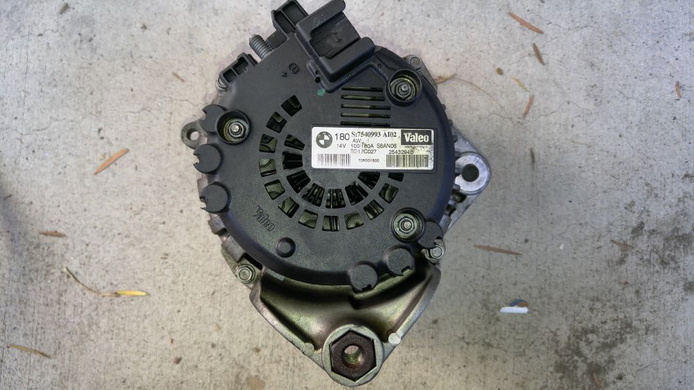 黑色的就是voltage regulator,是固定在发电机后边的,不把发电机拿出来,是根本不可能换它的。叉5的发电机有三种规格,因为regulator也有三种。讨厌的地方是除非你把发电机拿出来,要不然没法确定车上是哪款。我从网上得到的信息分析我的应该是180A的,因此先订了货,幸好蒙对了,要不然还要折腾。