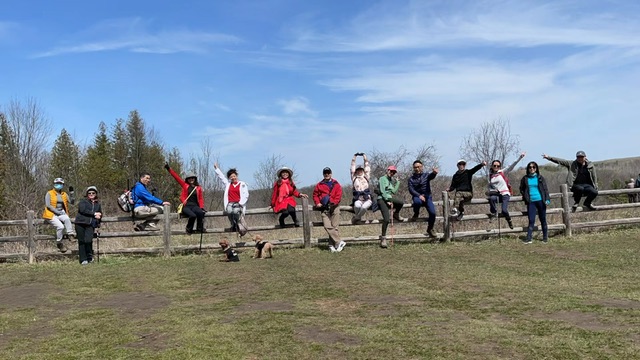 休闲时刻。这一天带狗狗的队友发现狗狗身上爬了大量的蜱虫,爬坡前心痛地为它们挑捡。