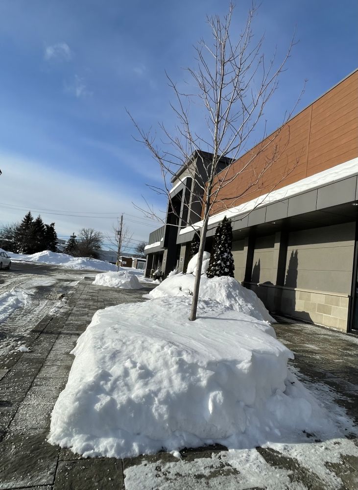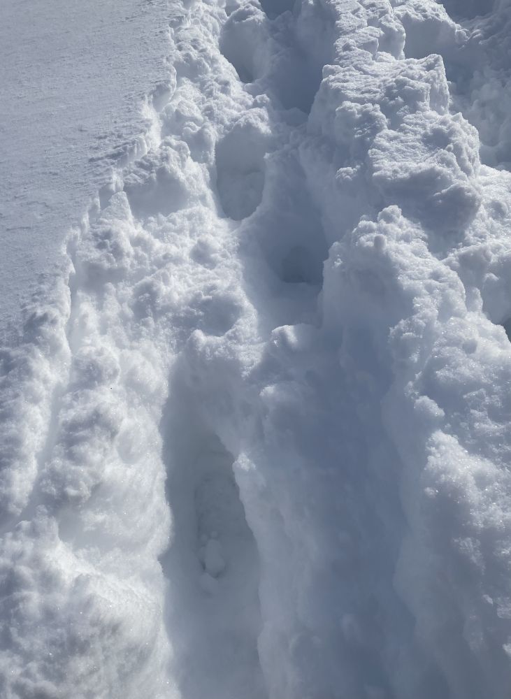 今天外边的阳光明媚,心也飞到了外边,决定走到超市买东西,顺便看看雪暴后的世界。我一改往日走小路的习惯,挑了大街旁的人行道走,以为这儿会被优先铲雪。结果还是深一脚浅一脚的,看来是铲雪后又降雪的结果: