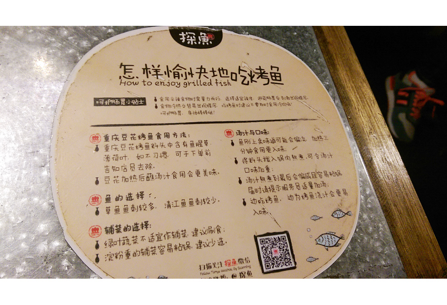 在新街口找了一家吃鱼的餐馆。 怎样点鱼和怎样吃鱼的说明。