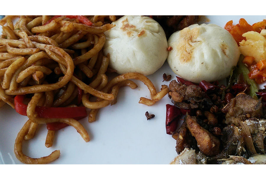 点了鸭血粉丝汤,南瓜饼,小笼包,真的很好吃。