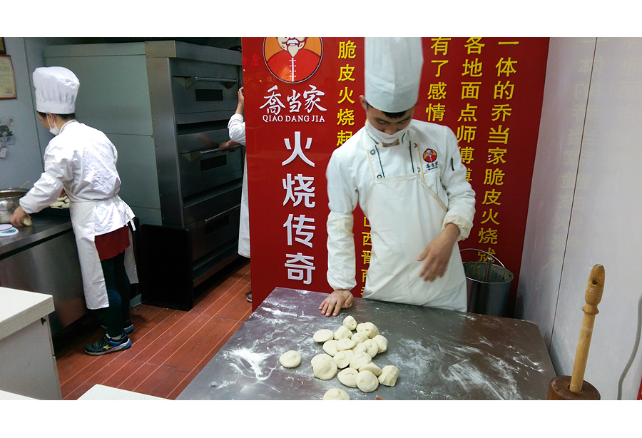 排队的时候有人上来一个个的收钱,交十元发一个小纸袋,排到的时候凭纸袋点喜欢吃的火烧,我要了一个麻辣牛肚的,不是喜欢吃,排到我只剩下这个了,否则还要再等下一批了。