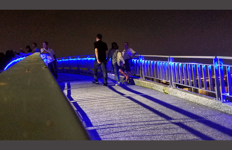 在桥上的观众。
