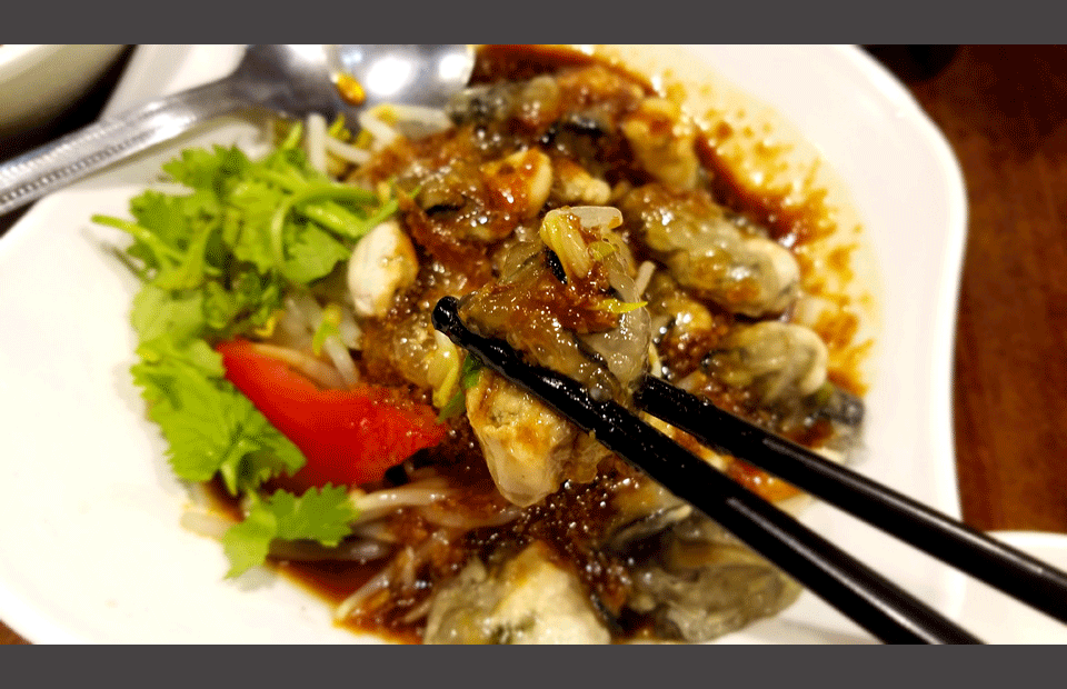 炒蚵仔,就是小的牡蛎,台湾气温高,牡蛎不易张大,大多都是小的。
