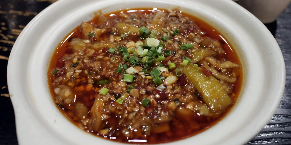 晚上去昨天去过的夫妻肺片总店,点了鱼香茄子,好像厨师换了,没有昨天的好。