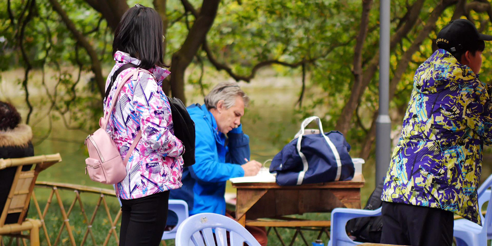 掏耳朵的,生意是超级的好,我等了好久也不见他们走经我的附近。