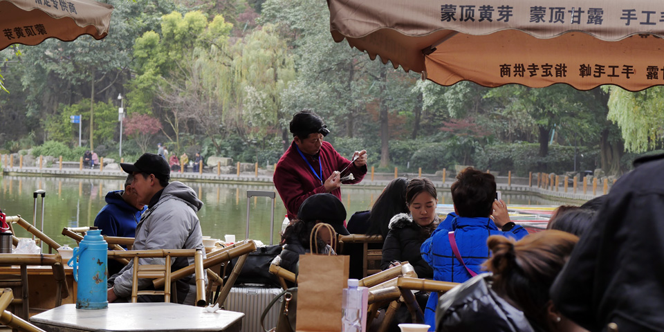 百年老店鹤鸣茶社。相对上海的小茶馆和北京的老茶馆,这个露天的茶社要大气了许多,令人心静气爽。