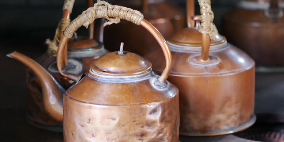 茶馆的老虎灶,擦的干干净净的铜壶。