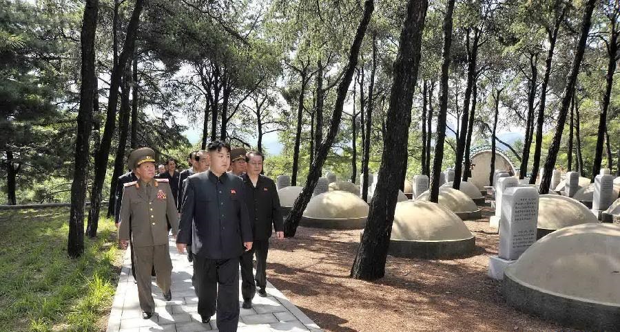 朝鲜半岛停战后,金日成下令在地桧仓郡高达150米的山腰上,修建了朝鲜最大的一座志愿军烈士陵园。陵园占地面积9万平方米,于1957年建成,共埋葬了134名死难士兵,其中包括因吃炒鸡蛋被美军飞机炸死的老毛的大儿子毛岸英。陵园一尊铜像石座的碑文上写的是“在无产阶级国际主义旗帜下用鲜血凝成的朝中人民的友谊万古长青”。