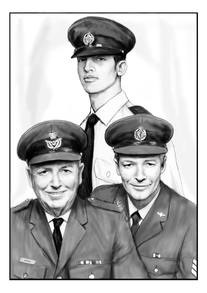 老友Jones先生,快乐友善的退伍老兵。他从小随皇家空军的父亲,意大利、马来西亚和本土各地调防,加入空军理所当然。现在,他的儿子是现役的空军中士,祖孙三代的RAAF澳大利亚皇家空军。老Jones先生,写了一本回忆录,他为皇家空军战斗了一辈子的经历。在空军他不断学习,努力工作直到以准尉(士兵的最高军階)退伍。书中配上几个时期的照片,各类型的飞机,欧洲各地的机?,他的孩子们...... 印了许多本留给下一代。没有皇家空军,他只是一个农场工人...... 这就是一个老兵的荣耀!他八十岁时,我画了张他们祖孙三人的素描肖像,作为他的生日礼物。老人十分喜欢,因为一个儿子,一个孙子,跟随他加入了皇家空军。