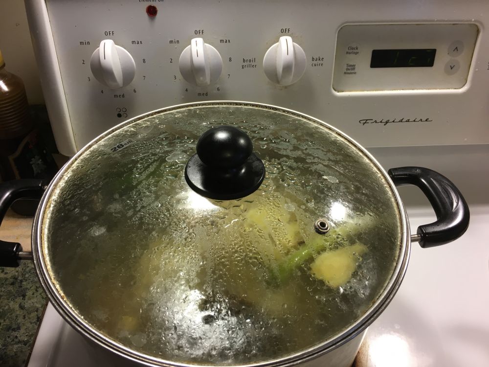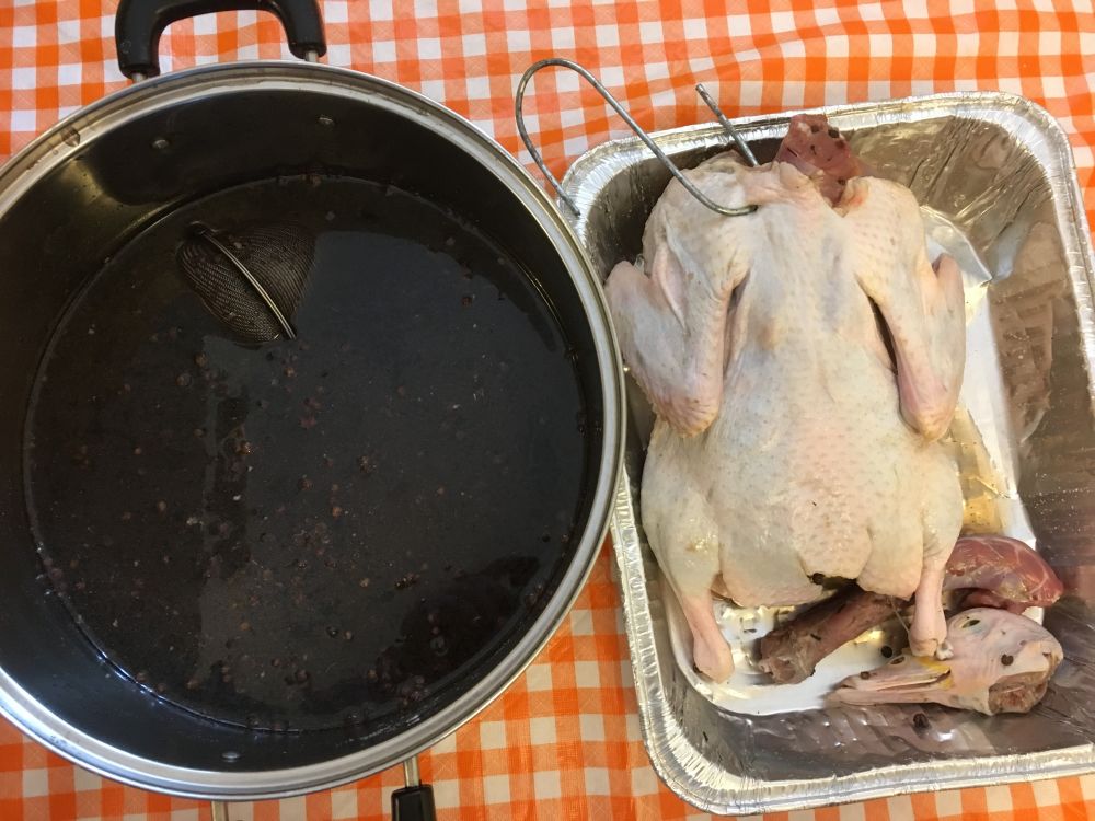 2和3的目的是使卤水清澈。我在制作中犯了二个小错误。没有及时取出香料包,也没有清除鸭坯中的花椒, 导致我的卤水颜色偏重。