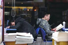 车间领导见我经常在电工间看书,有时候上头交代大批判的差事,就叫我去应差, 写几篇批判文章。没多久,厂里大概见我文字还过得去,便借调我去厂宣传处临时帮忙。 不需要在充满氯气的车间干电工活,我也乐得清闲。写大批判稿是“天下文章一大抄”,找 两张解放日报、文汇报拼凑一下就搞定。多下来的时间,可以舒舒服服坐在办公室看书。 不过要看一些从朋友处借来的好书,我还是不敢太放肆。便想出一个很妙的方法,把书放 在办公桌的抽屉里,将抽屉拉开来看书,办公桌面上则堆满各种报章文件,作“努力批林 批孔”状。偶尔领导走进来,我便恭敬起立迎接,顺便挺直身子,将抽屉自然地归位,不 落丝毫痕迹。这种方法屡试不爽,从来没有失风过。可惜那年头不尊重知识产权,否则我 可以去申请“安全读书法”专利的。