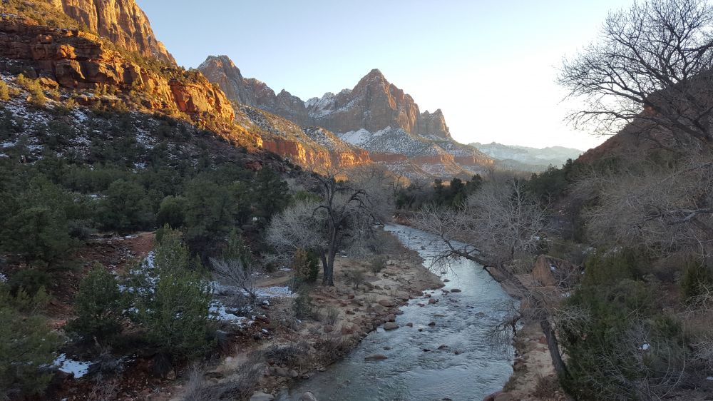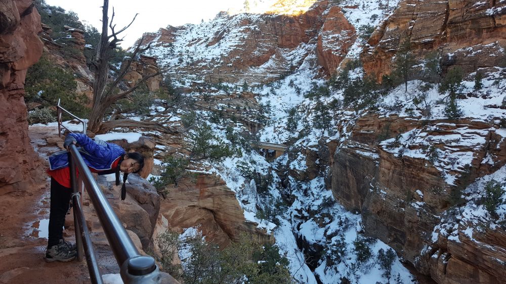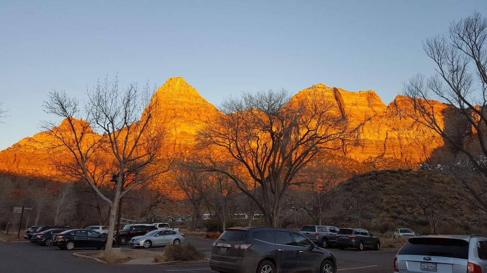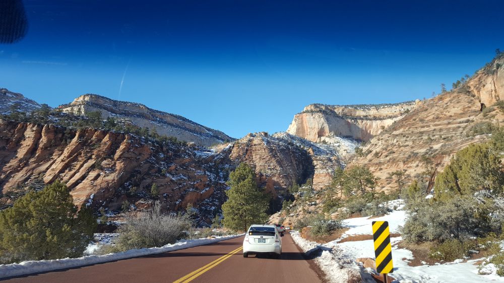 12/29/16,是这次出游的第六天。上午我们走了 Bryce峡谷的Peekaboo trail.下午2点就到了Zion,这是本次出游的第5个国家公园,也是最后一个了。