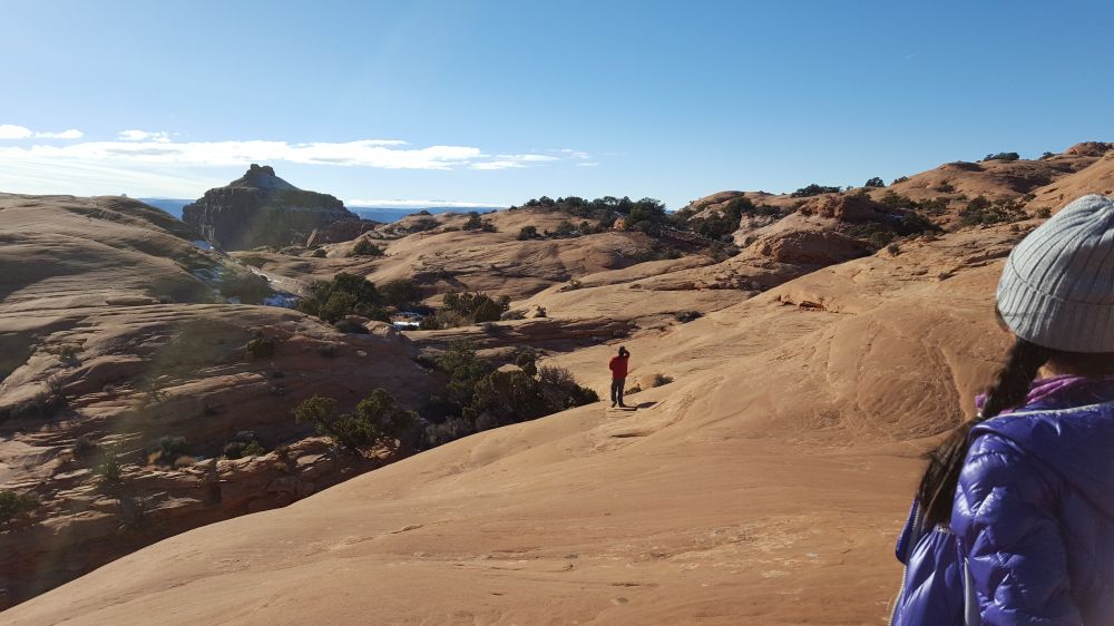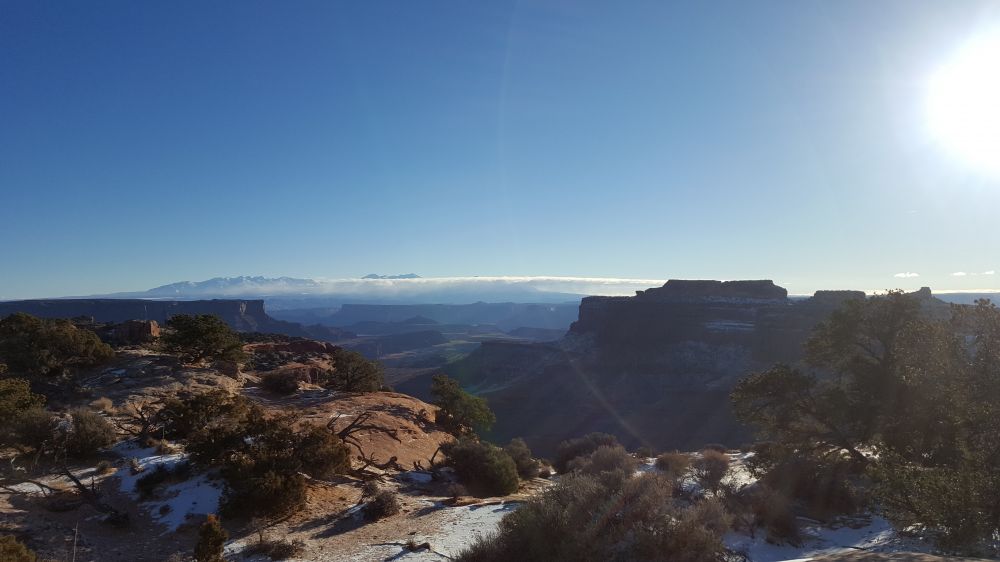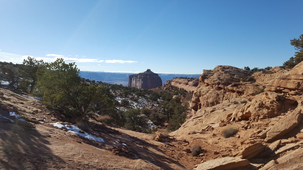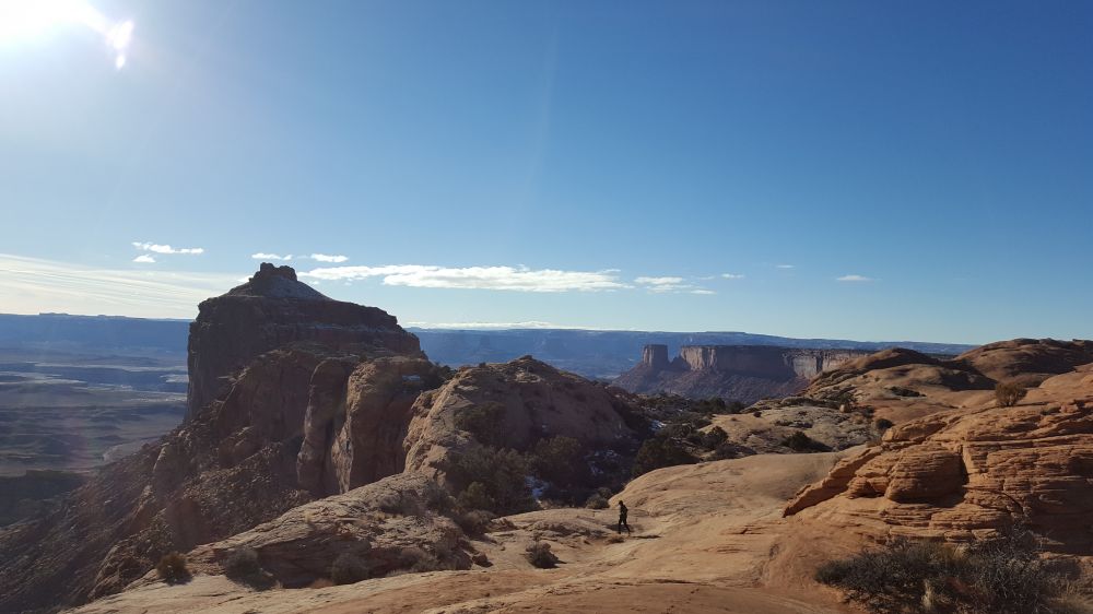 接着我们去Grand view point overlook大观景点观景台。这里视野广阔,一望无际的,台地横七竖八裂开深沟,而且是分两层的,峡谷下还有一层峡谷。置身于此景边缘,恍若站在没有生命气息的外星球。