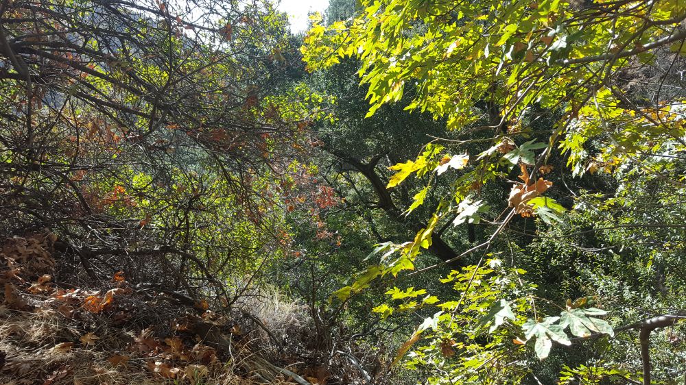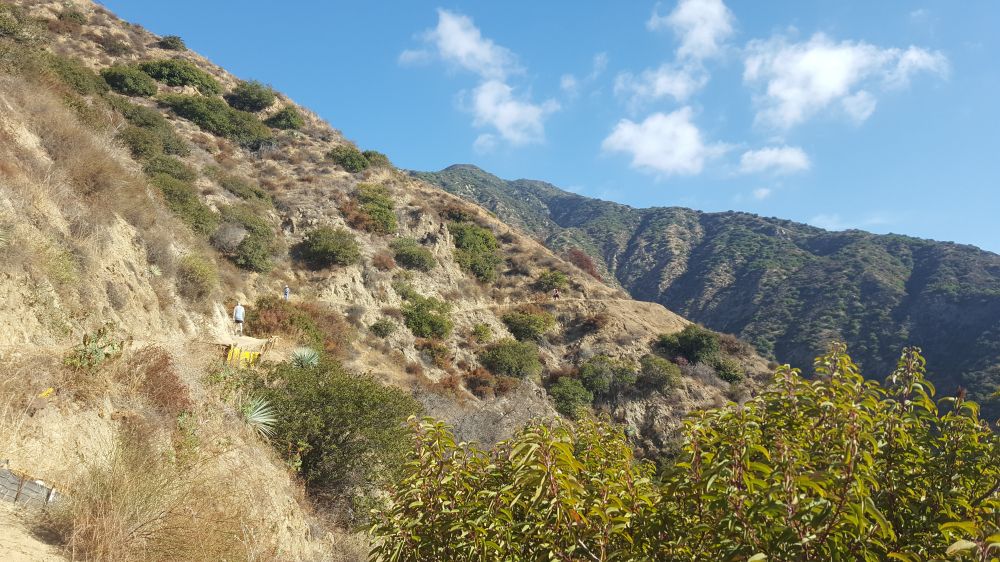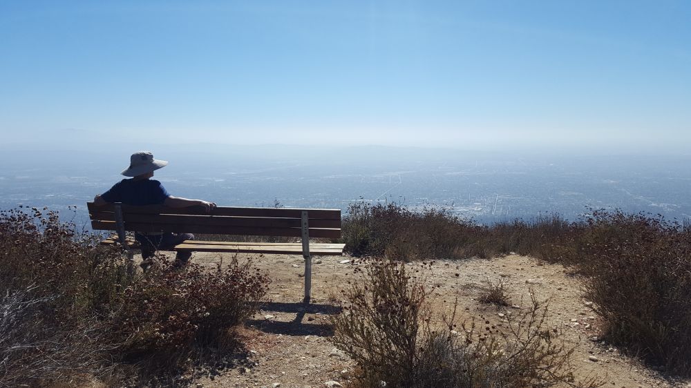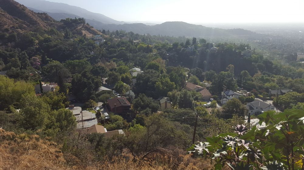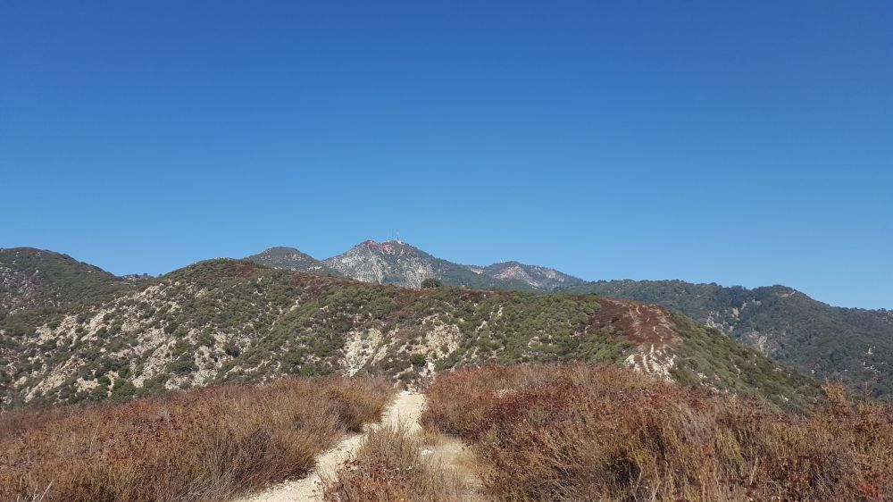 远处是MT WILSON塔台,还可以看见灭火的红色粉末。周一发生野火,还好及时扑灭。