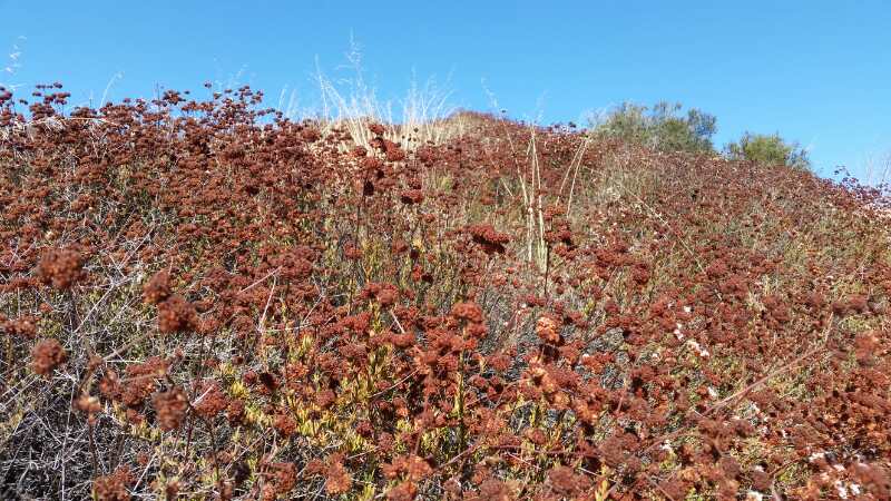 这里的山坡有一大片枯萎的铁锈色的的干花,满坡的褐红,竟也美得动人。