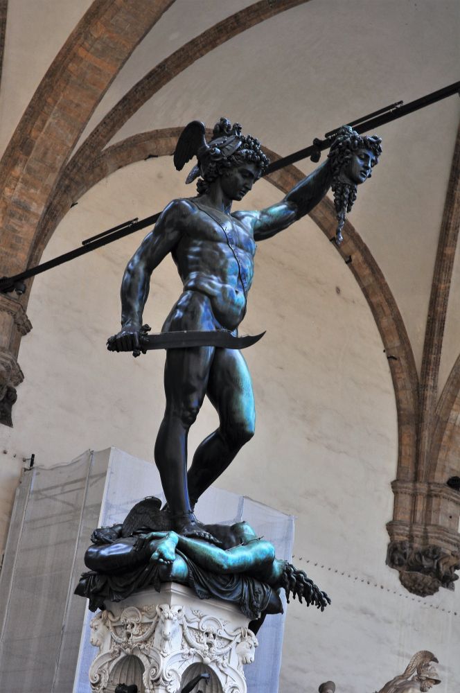 上图青铜雕塑名为:‘珀尔修斯’。珀尔修斯是宙斯之子,他手里提的尚在滴血的头是倒霉的蛇发怪女美杜莎。(源自希腊神话)