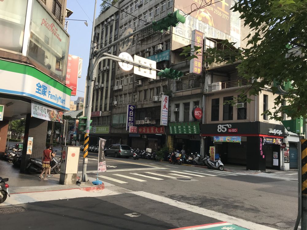 坐上国光大巴,一路从桃园开往台北。公路上大汽车接二连三,偶有自驾车,但外面多是黑暗夜色。当汽车开进台北市时,路边灯火多了起,比较高的楼房灯光多了不少,还有行行的街灯,在十字路口顺路往前往后看时,摩托车大队的车灯如一条灯河一样。台北的十字路口并没有看到太多的交警指挥监督。台北这里确是没看到像北上广近二十年新建出来的那种巨大的成群的新式高楼。