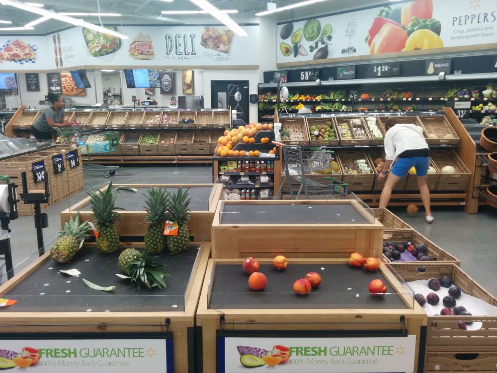 超市里仍然有大量物资,不过,也有许多食品架都空了。