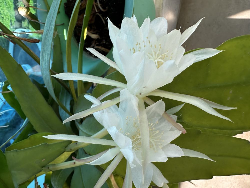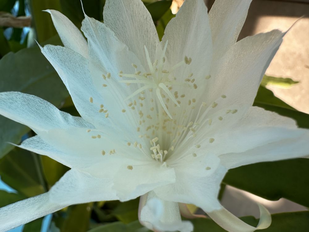 可是,看看阳台西边上的昙花,上个月冒出了36个花朵,至少有一半以上的花朵是绽放了它们的风稚的,现在又有差不多30个花朵在酝酿花期了,要知道它们是我从一片叶子培植起来的。
