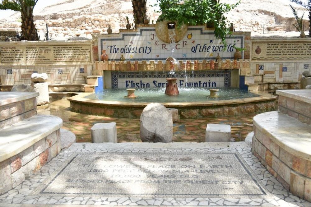 这是在诱惑山缆车站旁边耶利哥古城入口处的以利沙泉。耶利哥古城是世界最古老的城市,这是也是世界海拨最低处: