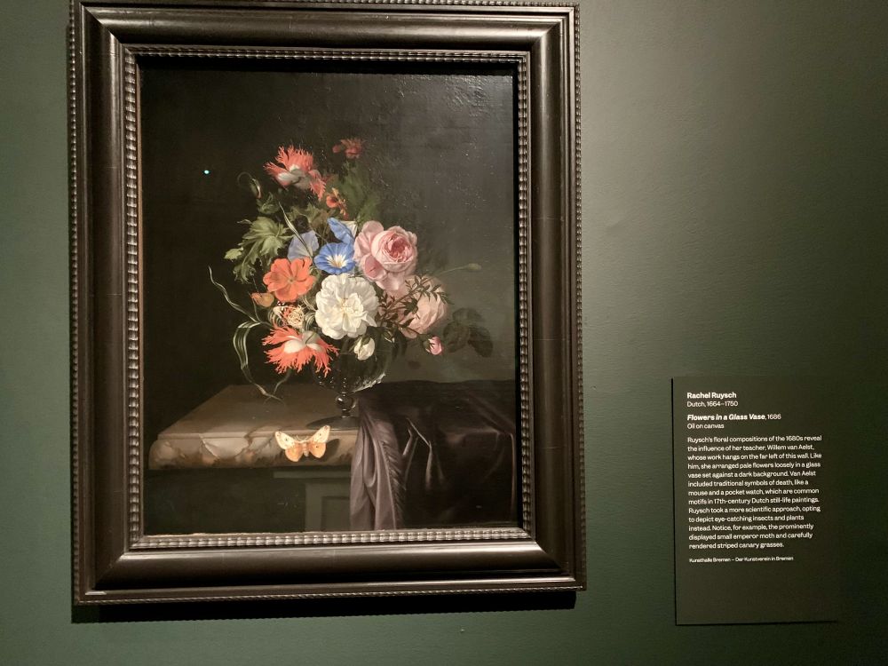 令我开心不已的是,这次看展发现了一位我过去不了解的荷兰女画家Rechal Ruysch。我非常喜欢她的画作。因为她画的都是美丽的花卉。也许我之前在别的地方见过其中的一两幅。但是这样集中的还是第一次。这就是我的意外收获。