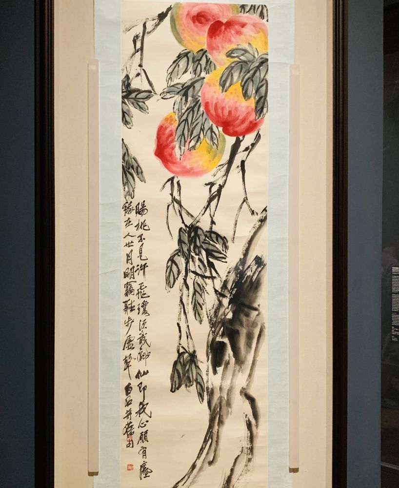 14 七拐八拐,终于找到了齐白石的展室。这幅寿桃就是这次展览的poster。很鲜艳色彩,把我吸引了去。