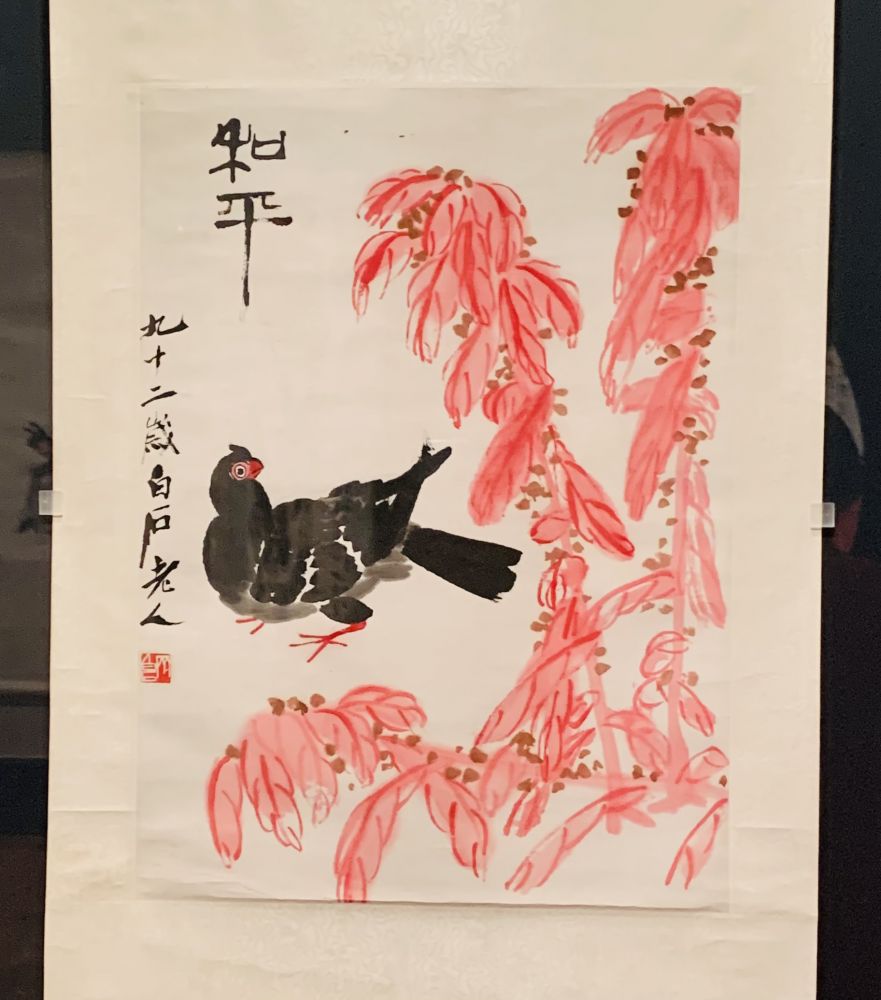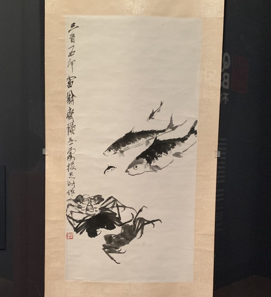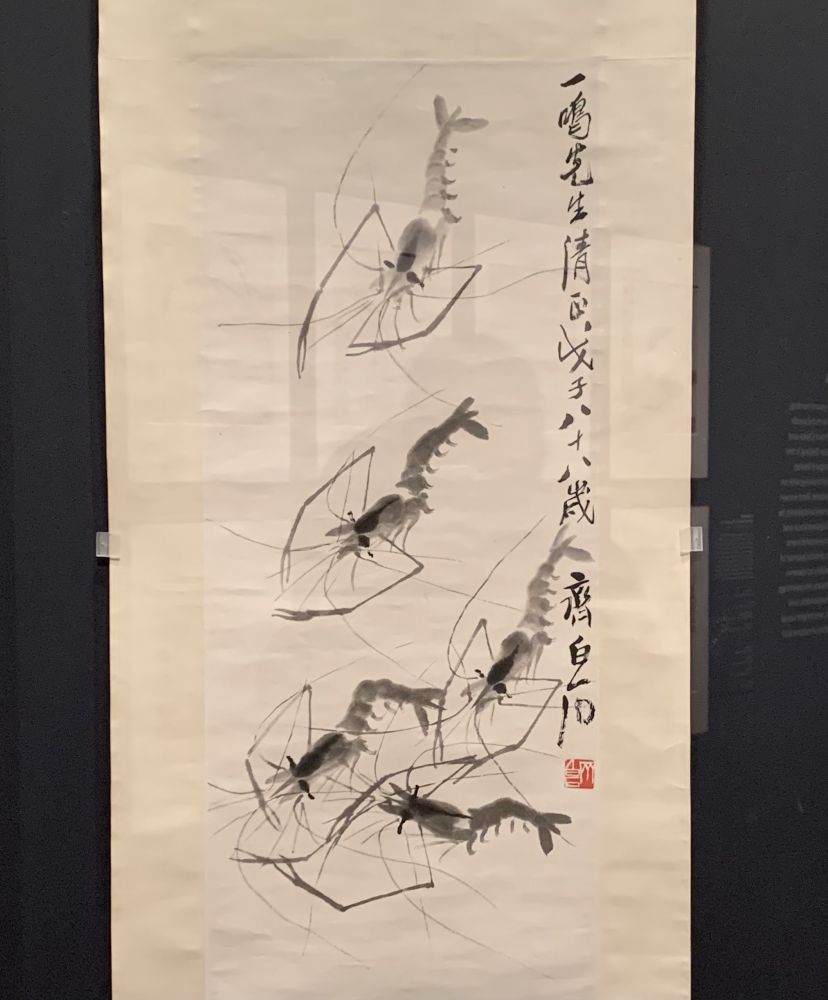 作品也不多。介绍说有四十幅。好像没有。但还是包括了齐白石各方面的画作。比如青虾,鱼,螃蟹,老头儿 。。。。。已经很好了。能在波士顿看到真迹。那天儿子也陪我们去了。喜欢国画的儿子说,他觉得能看到齐白石的画很高兴。他卧室里是一幅他自己中学买的不知是谁的国画。书桌右上角是一本大大的刘海粟画集。这算是文化传承吧。
