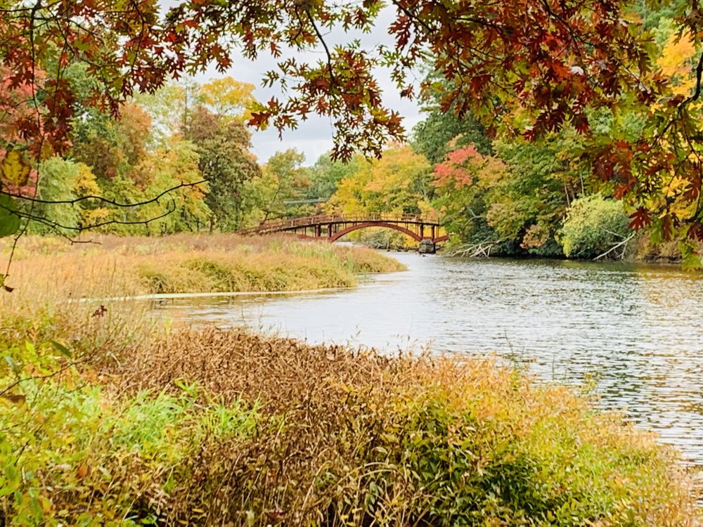 那年秋天,我们路过这里。隐隐约约透过树丛的缝隙看到查尔斯河的支流上有一座红色的小桥。我们靠边停车,我拨开树枝拍下这几张。后来,我试着走到桥上。转了一个圈也走不上去。我这才反应过来,这是一座私家桥。再后来,我不仅确认这是一座私家桥,我还通过朋友认识了这座桥的主人。他们还邀请我去那桥上走一走。大户人家。占地横跨一条著名河流。还建有一座小桥。何其豪横。