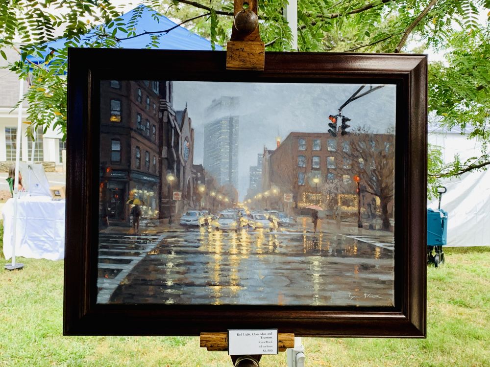 今年夏天的时候,在小桥另一侧的小公园,有个活动。就是大家把自己的东西拿来卖。还有乐队。我看到有个画家在卖画。他画的挺好的。我尤其喜欢他画的波士顿downtown汉考克building那一幅夜景。我问他是否画过那座桥。他说没有。