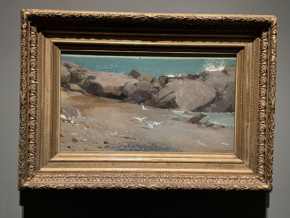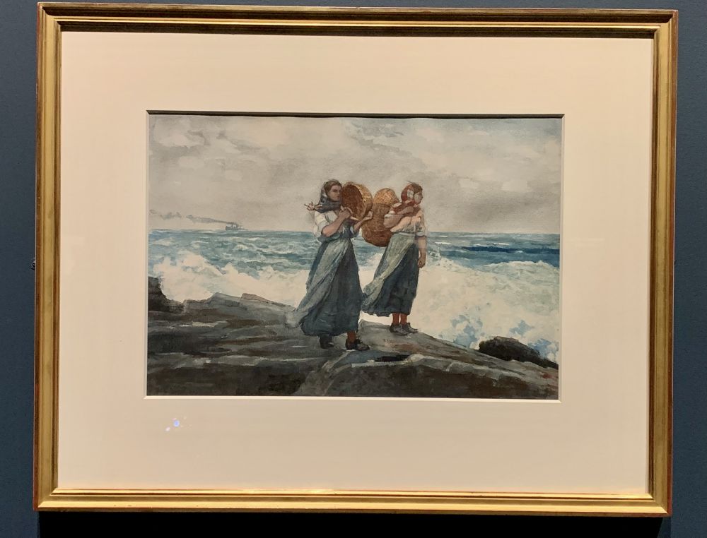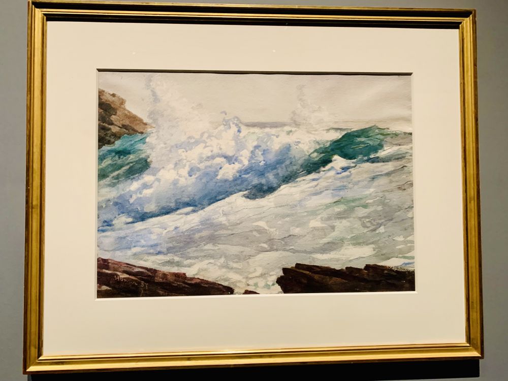 Winslow Homer 是美国最著名的水彩画艺术家。出生在波士顿,成长于剑桥,长眠于波士顿著名的Mount Auburn Cemetery。他就是本地的名人画家。Homer一生大部分时间是个自由画家。曾居住于不同地区和国家。最后长居缅因海边。因此他笔下的礁石和海浪让我感觉亲切熟悉。