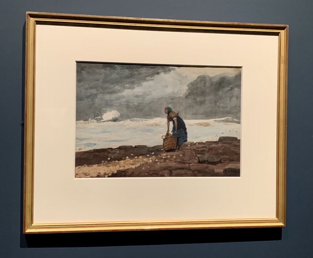 我专门挑选周中去。以为人少趴车容易。出乎预料,参观者熙熙攘攘。趴车只能进马路对面的garage。而且99%是退休人士。有两三位拄拐杖的。和我同一批人里,就有三位坐轮椅的。和北斋,莫奈,梵高特展不同的是,没看到拖家带口的同。可能Homer的名气没有前面几位大有关。据波士顿美术馆的介绍说:这次集中展出是为隔代人提供一次看展的机会。