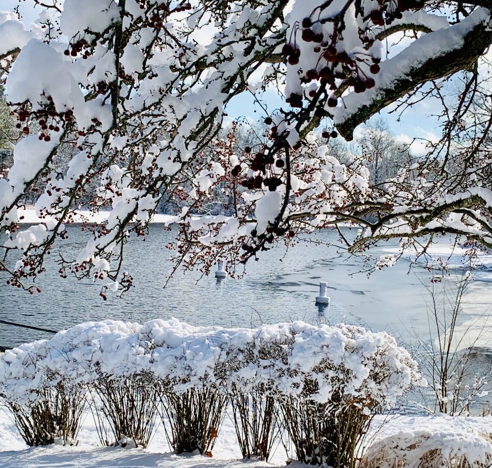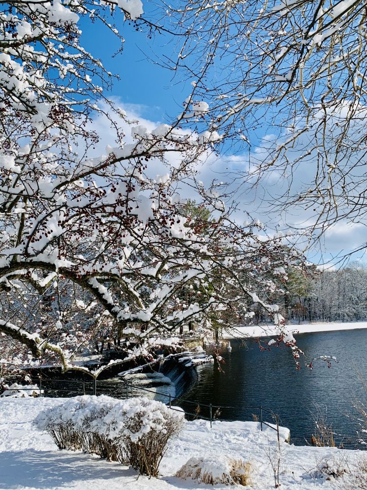 7 想去更宽阔的地方赏雪。转来转去,还是来到了水边。主要是那里停车方便。水边也很漂亮呢。