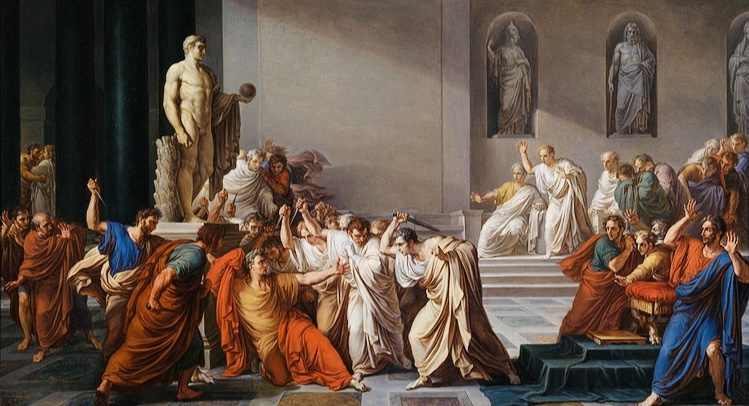 3 凯撒大帝在公元前44年的元老院会议上被刺杀身亡。元老院就在庞贝剧院旁边。领导者为Brutus 和Cassius。参与谋杀者多达60人。