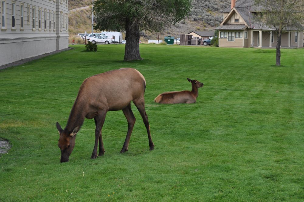 在Mammoth Hotel附近的草坪上可以看见很多的鹿,我们下山后就看见两只。