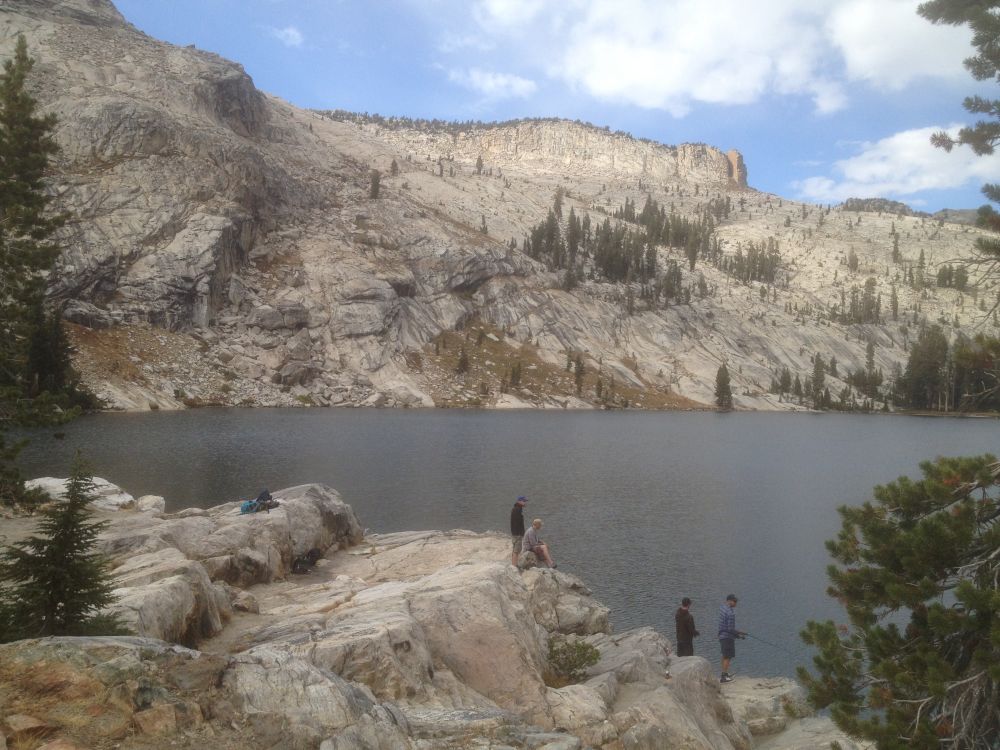 远处几个哥们在钓鱼。在这样美丽的风景中钓鱼,享受啊。