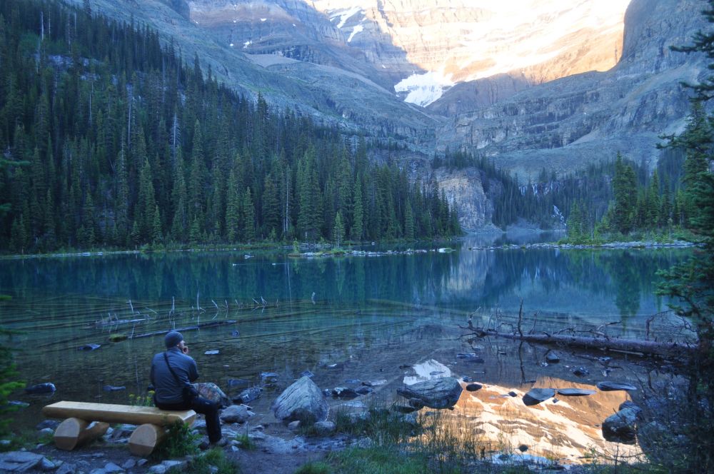 如果说加拿大最美丽的风景是在西部的落基山脉,那Lake O’Hara就是其中一颗最靓丽的风景明珠,它好似一处人间秘境,隐藏在Yoho National Park中,可以毫不夸张地说,它是加拿大最美的湖,把之一去掉。2013年八月我和同伴有幸来到这里。还记得三个月前,我们几个人打了大半天的电话,终于在下午接通,幸运地订到了进山的Shuttle Bus和今晚的营地。如果没有订到公园的Shuttle Bus,就要步行13公里进山,一路没什么风景可看。现在可以网上预定,听说同样难。