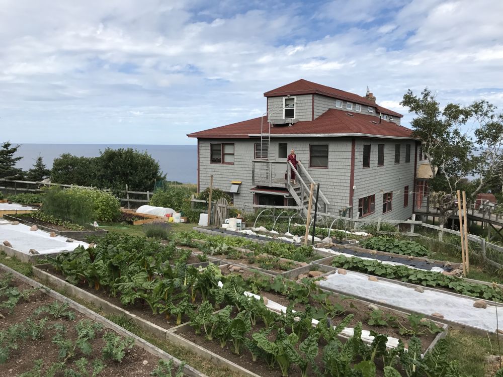 第二天早晨,我跟邻居的那个美国老先生聊天,老先生是从事神经医学康复治疗的,我们之间自然很有话题。他告诉我说,每年秋天在Cape Breton地区会举行音乐会,届时会非常热闹,露营地是一位难求。他还告诉我,他们夫妇二人要去访问Pleasant Bay地区的一个佛教寺庙---Gampo Abbey,据说那里景色非常优美,他也不确切具体的地址。在这样的公园内居然会有所佛教寺庙,令我感到好奇,也想一睹风采。早饭后,我们出发,沿着Cabot Trail继续北上。一路上经过几个观景点,我听说在Fishing Cove那里有一把红椅子,可需要徒步几个小时走到下面的海边,就算了吧。Pleasant Bay可以出海看鲸鱼,如果运气好可以从高处瞭望到海湾里的鲸鱼,不过那可能只是一个小黑点而已。我一心想找到那个隐秘的寺庙,在一个卖纪念品的商店里,终于打听到了路线。在Cabot Trail路上,还没到MacIntosh Brook营地,有一个岔路口,会看到一个指示牌去Whale tour,另一个不起眼的标识牌指示前往Gampo Abbey,Abbey是大修道院、大寺院的意思。沿着一条沿海的土路我们来到了这里,这里地处偏僻,非常清静,路边有一个小停车场。寺院的主体建筑,房子前面种了很多蔬菜。
