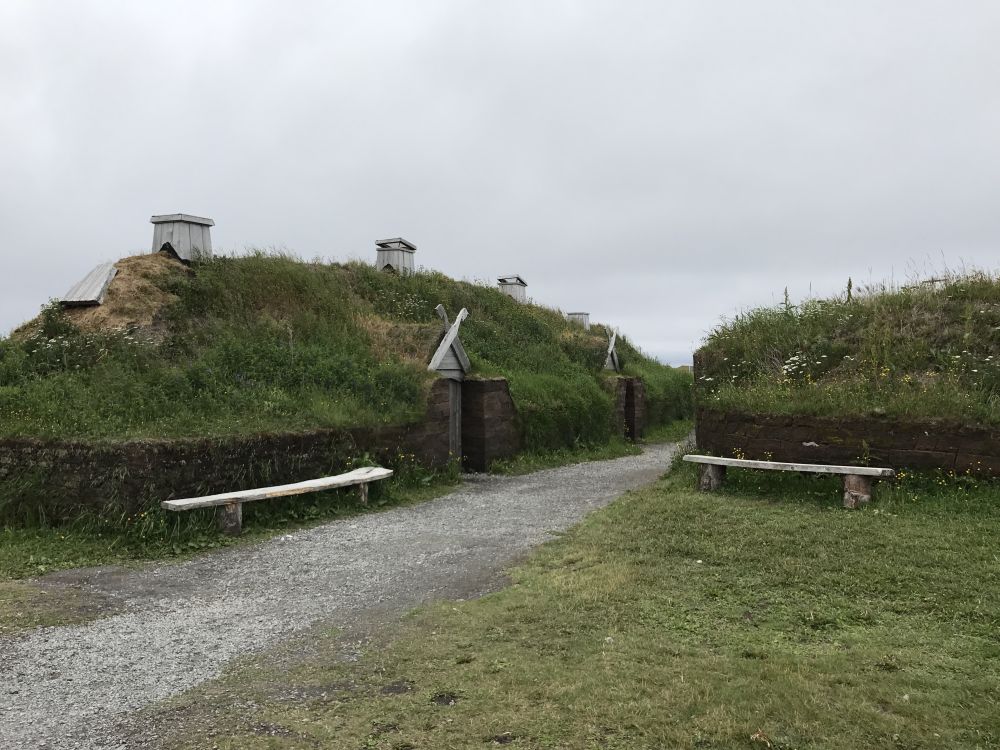 维京遗址坐落在在半岛最北端的海岸线,这个1960年发现的考古遗址证明了:早在1000多年前,哥伦布还没发现美洲大陆,北欧人或者维京人,就已经来到这里了。1978年这个维京遗址被联合国教科文列入世界文化遗产目录,可见其特殊性。现在的遗址建筑是仿照维京人的建筑风格建造的,并非在原址上。我们刚好赶上十点钟的导游讲解,讲解的老人参与了当初遗址的发掘建造,遗址建好后就在这里工作,一晃三十多年了。他的讲解让地上那一处处不起眼的痕迹充满了故事。他说小时候就跟父母住在这一带的村子里,那时候我们眼前所见的小溪里还游着三文鱼呢。