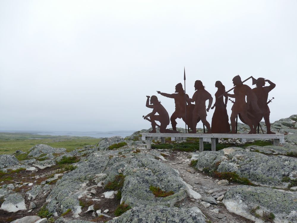 游客中心有各种出土的文物,如果想更好地了解遗址的来龙去脉,还有循环播放的录像,值得一看。毕竟大家都是普通游客,知识有限。山头竖立的雕像提示人们:我们维京海盗拜访过这里。