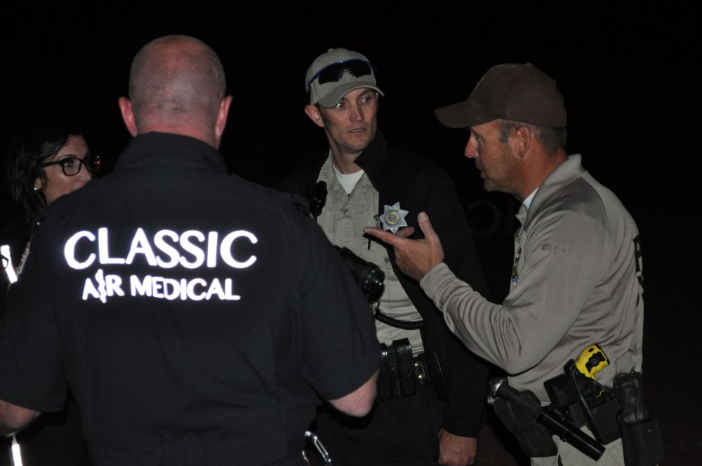 机上下来两男一女,他们是一位当地警官和两位紧急救护人员,他们熟悉这一带的地形地貌。他们听了我的叙述,也认为她们迷失在谷中的可能性不大,决定去Wave搜寻。马达轰鸣,直升机起飞,消失在夜空。在跟警官闲聊的时候,我忽然想到一个问题:我们不是美国公民,没有美国的医疗保险,如果打911是要付救护车费的,这一趟直升机救援得花费多少钱啊。不过事关人命,救人要紧,钱的事以后再说吧。