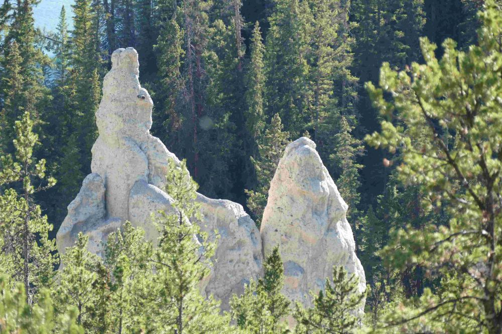 吃饱喝足又有了精神头,走起。班芙镇旁边的Hoodoos是一景。要说Hoodoos还是美国Bryce Canyon最为壮观。从这个角度看,这个像不像一位盘坐的古代仙人,有鼻有眼,头上挽着高高的发髻,前面还立着个小书童。记得当年在海南,导游说我们这里的每一块石头都是有形有故事的,有人问你说这块破石头像什么?导游说发挥想象。