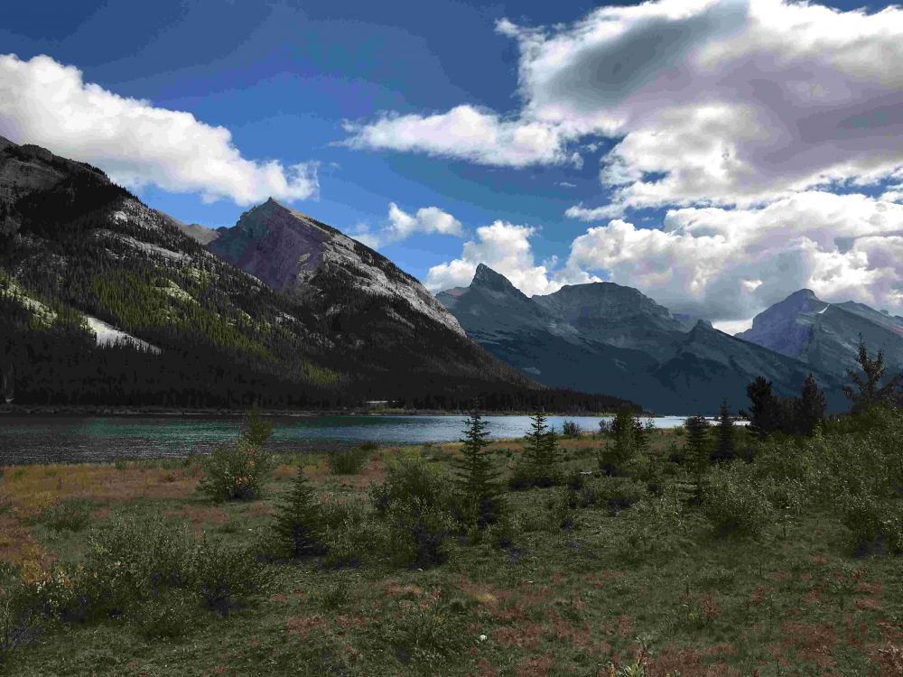 沿着742公路,一路颠簸,风景不错。看攻略Spray Valley Provincial Park有一些可圈可点的步道,可惜没有时间走了。在Spray Lake west side campground我们逗留了好一阵,被这里的湖光山色吸引了。将来有机会再来,一定在这里露营,好好感受一番这里的地域风光。