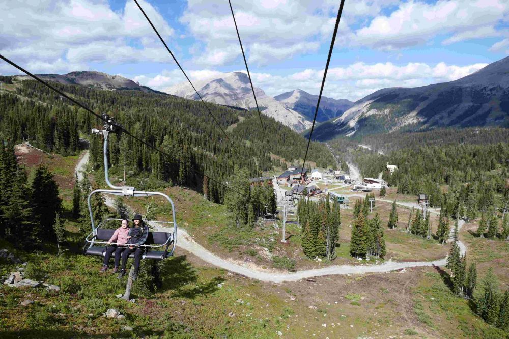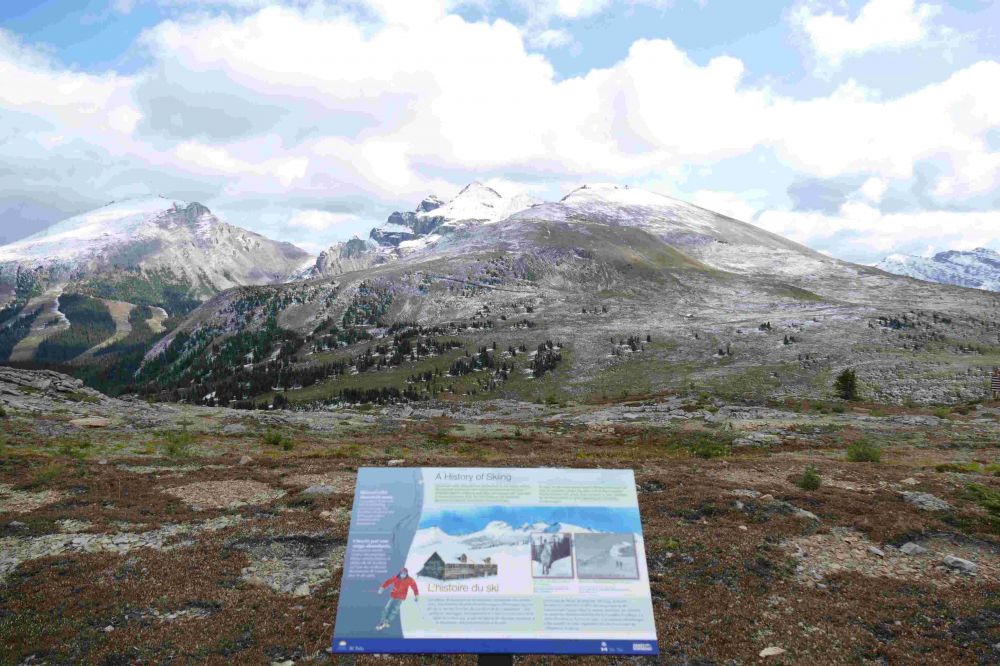 下一站是今天的重头戏:sunshine village 冬天这里是滑雪场。在山下乘缆车(Gondola)直到山顶,可沿山道徒步上山,不值得耗费体力。九月山坡上的松树还是绿色没变成金黄呢。所以要看秋色,还要更晚些。山上跟山下是两种气候的感觉。在山顶的垃圾箱上我居然看到了积雪。