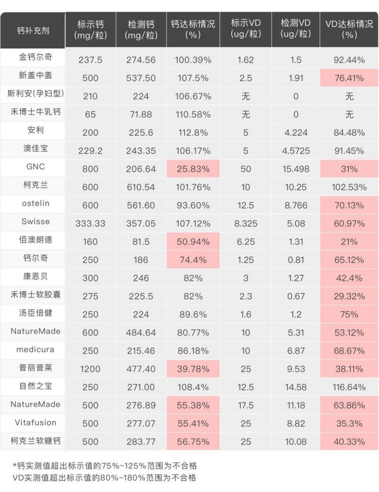 同一家的产品,为什么一个合格一个却差这么远?而且这后一个的含量大约恰是标称值的一半,这让本人隐隐有了一个猜测:他们测的是不是每粒的含量,而产品的标称值其实是两粒的?再看这个表,钙含量检测不合格的7个产品中,有4个是50%几,有两个分别是40%和75%左右,离50%也都不远,会不会都是这个原因?还有一个GNC的产品测出来是25%左右,按此推论,很可能标称值是4粒的含量,他们也只测了一粒。如果真是如此,所谓不合格就是一个大乌龙!