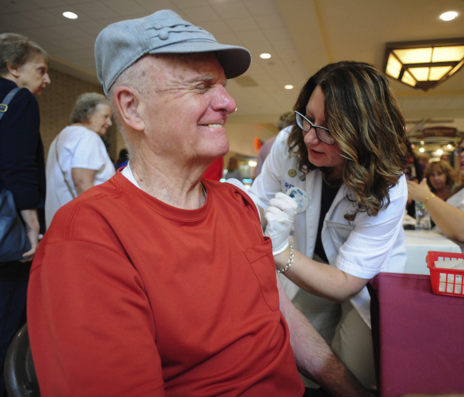 联邦疾病防治中心表示,美国去年冬天至少有8万人死于流感。图为宾州一名男子注射流感预防针。(美联社)