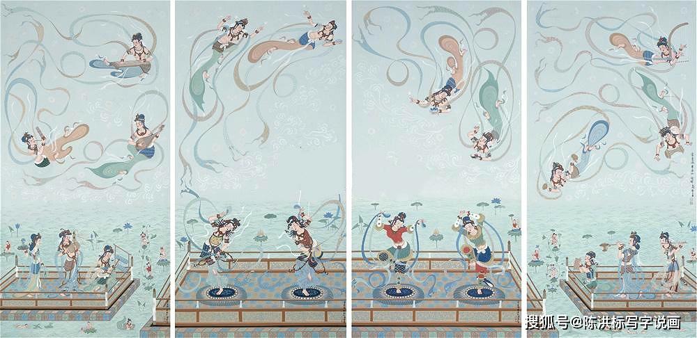 另一件作品,就是常书鸿一九九一年创作的四扇屏风《飞天舞乐》,在北京朵云轩二零零七春拍中,以1089万的天价成交。